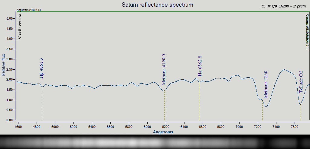 The strongest absorption band of CH4 is located at about 900 nm and is the one upon which is centered the usual methane filters used by amateurs for scientific imaging of planets. Unfortunately, the sensor's poor sensitivity at those wavelengths prevented it from being recorded.